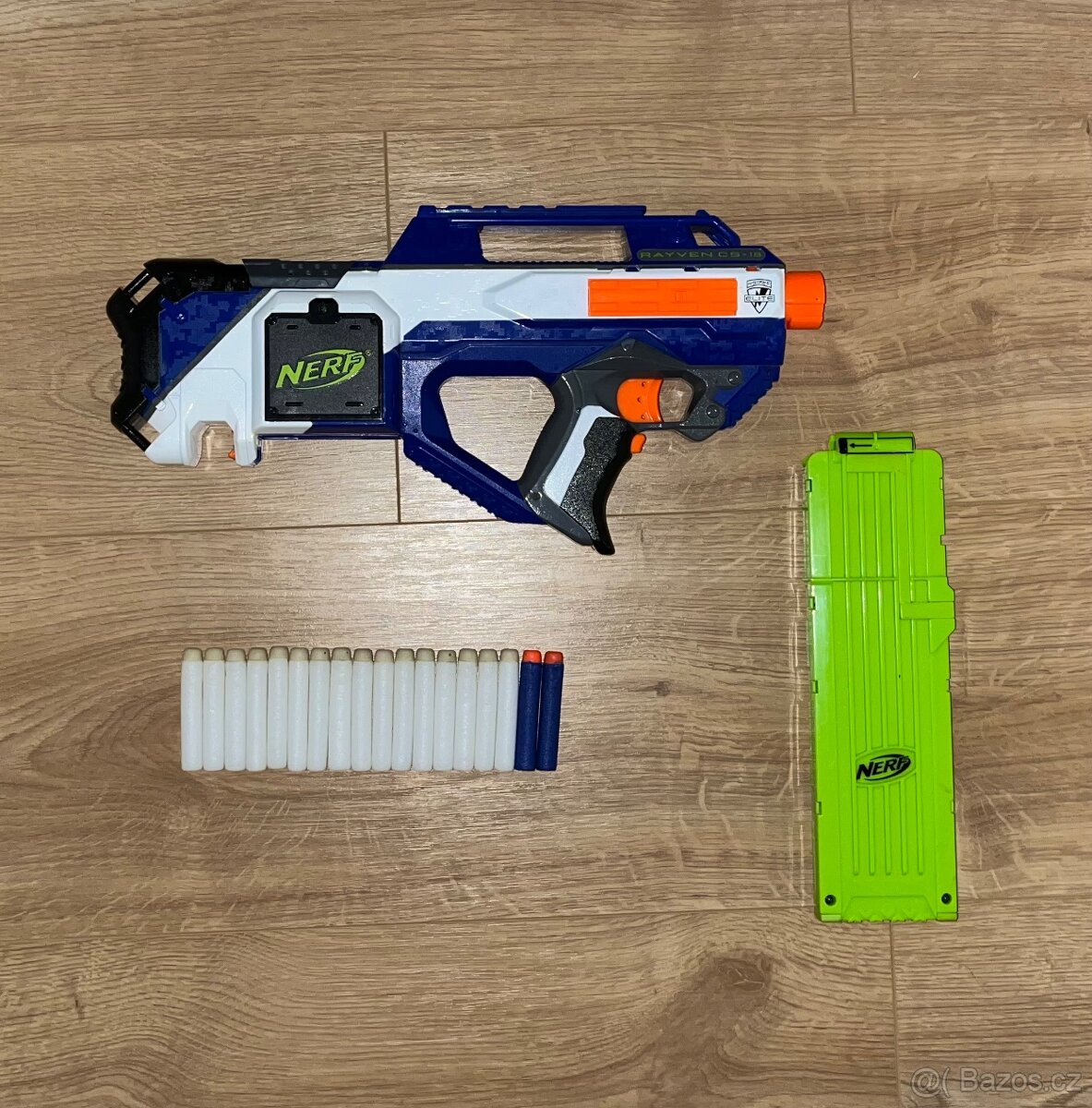 Cena: Dohodou. Prodám tuto poloautomatickou pistoli Nerf N-Strike Elite Rayven CS-18. Téměř nepoužitá, v perfektním stavu. Tento první typ v Elite verzi se už téměř nedá sehnat. K provozu jsou potřeba 4 baterie AA. Prodávám, jelikož už pro ni nemám využití, tak snad někomu udělá radost. K pistoli dám také původní zásobník na 18 nábojů a 18 šipek Elite. Z toho 16 svítících ve tmě a 2 klasické Elite( za tu dobu už se 2 svítící někde ztratily :D) Baterky k tomu neprodávám. Pouze osobní odběr ve Frýdku-Místku nebo okolí (Ostrava, Paskov, Sviadnov, Janovice u Frýdku-Místku, Frýdlant nad Ostravicí atd.) Přes týden jsem v Brně, takže po domluvě mohu dovézt i tam. Pokud byste měli zájem o více Nerf pistolí, tak neprodávám jenom tuto, stačí kouknout na můj profil.