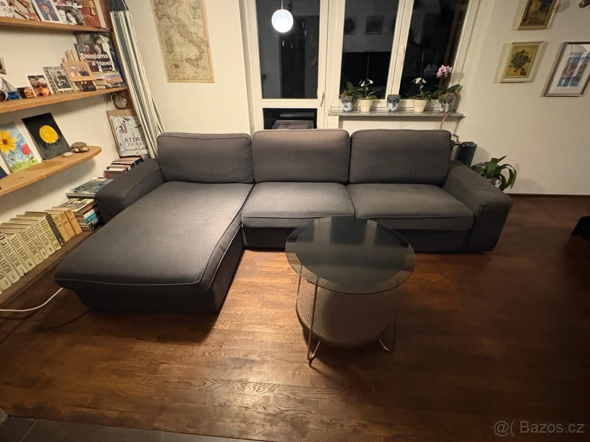 Prodám šedou sedací soupravu do L, rozměry jsou 320*90 cm, lenoška 160 cm. Všechny potahy jsou sundavací na zip a pratelné. Sedačka je v bytě nekuřáků a bez zvířat. Sedačka je na některých místech vyšisovaná (vidět na fotkách), ale není nikde potrhaná ani popraskaná, materiál drží stále pevně. Není rozkládací ani nemá úložný prostor. Cena 900 Kč, odvoz vlastní nutný - Praha 5 Košíře. Konferenční stolek na fotce je k tomu zdarma. Při rychlém jednání do konce února sleva 400 Kč.
