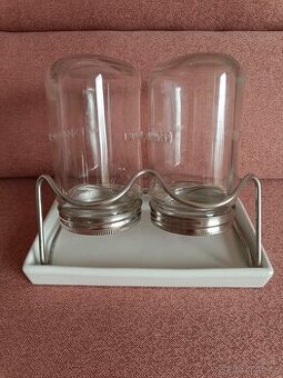 NOVÉ - originál zabaleno + prodávám i jiné... Zajímavostí je vyplétané víčko, které vytváří nerezovou síťku. Ta má samozřejmě velmi důležitý úkol a bude chránit semínka před vodou. Víčko se nemusí sundávat a ani není nutné používat cedník, aby přebytečná voda odtekla. U skleněných nádob je výhodné i to, že klíčky se bez problémů mohou pěstovat i v létě, kdy poletuje různě hmyz. Ten se ovšem dovnitř nedostane. Praktický stojánek poslouží jako držák pro sklenice a tím se pomalu odstraní poslední zbytky vody. Semínka mají dostatečný prostor a díky tomu, že jsou k dispozici dvě nádoby, tak lze nechat vyklíčit dva druhy různých klíčků.