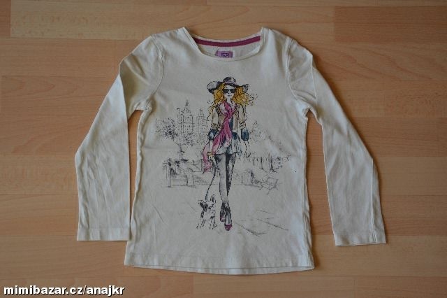 Prodám použité dívčí triko s dlouhým rukávem. Velikost: 6-7 let Rozměry: šířka - 2x31cm délka - 45cm délka rukávu od krku - 46cm Možnost osobního odběru - Vsetín Poštovné: 150,-Kč Balík do ruky, 100 -Kč Balíkovna