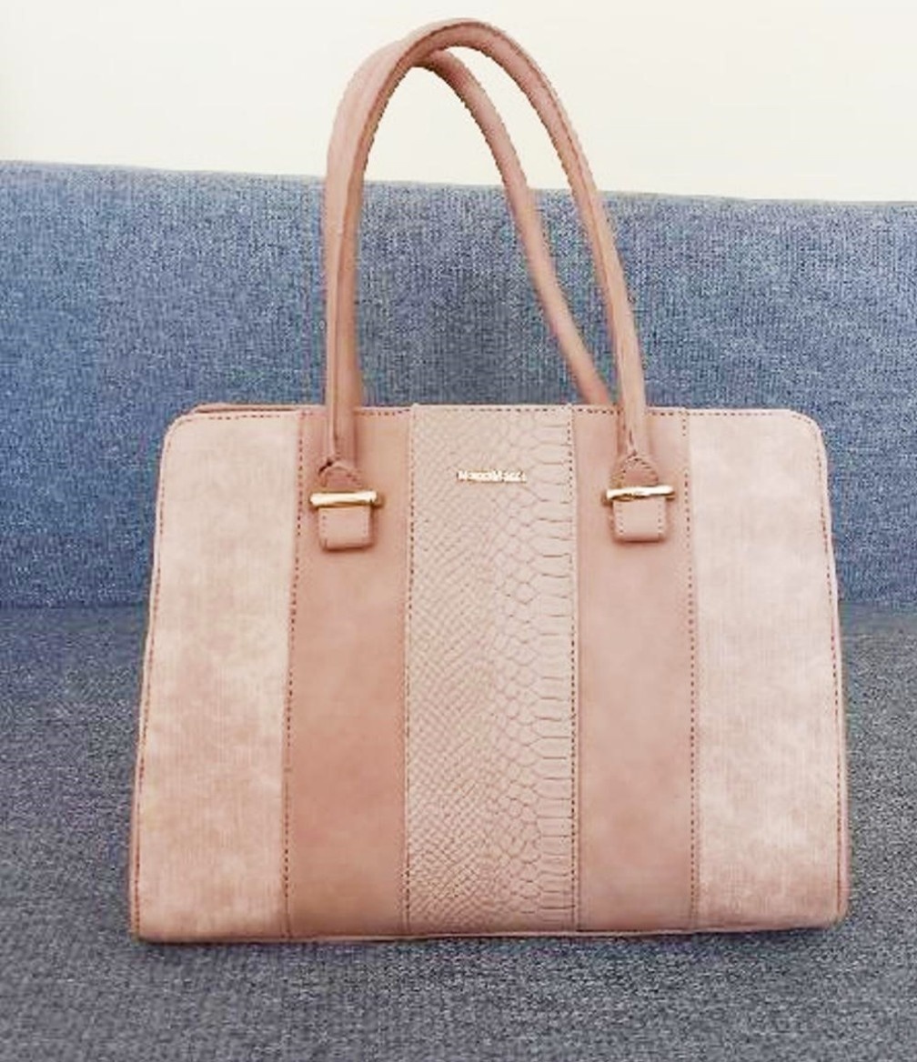 Nová kabelka ze tří druhů růžové pudrové umělé kůže, má 2 ucha do ruky, zip, uvnitř 3 přihrádky, na zadní straně kapsa na zip. Značka Maria Marni