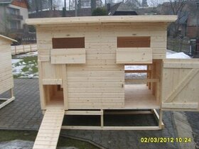 Nový kurník pro 30 slepic, hnízda na snášení vajec, větrací okénka, žebříček. Možne i s výběhem, nátěrem, automatická dvířka, šindel a oplechovani střechy, plech na podlahu aj. Cena 26.900kč.Dopravu mohu zajistit osobně.