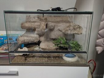 Prodávám terárium po gekonovy, vybavené. Rozměry: šířka 50cm x výška 33cm x hloubka 40cm + viz foto Při rychlém jednán možná sleva.