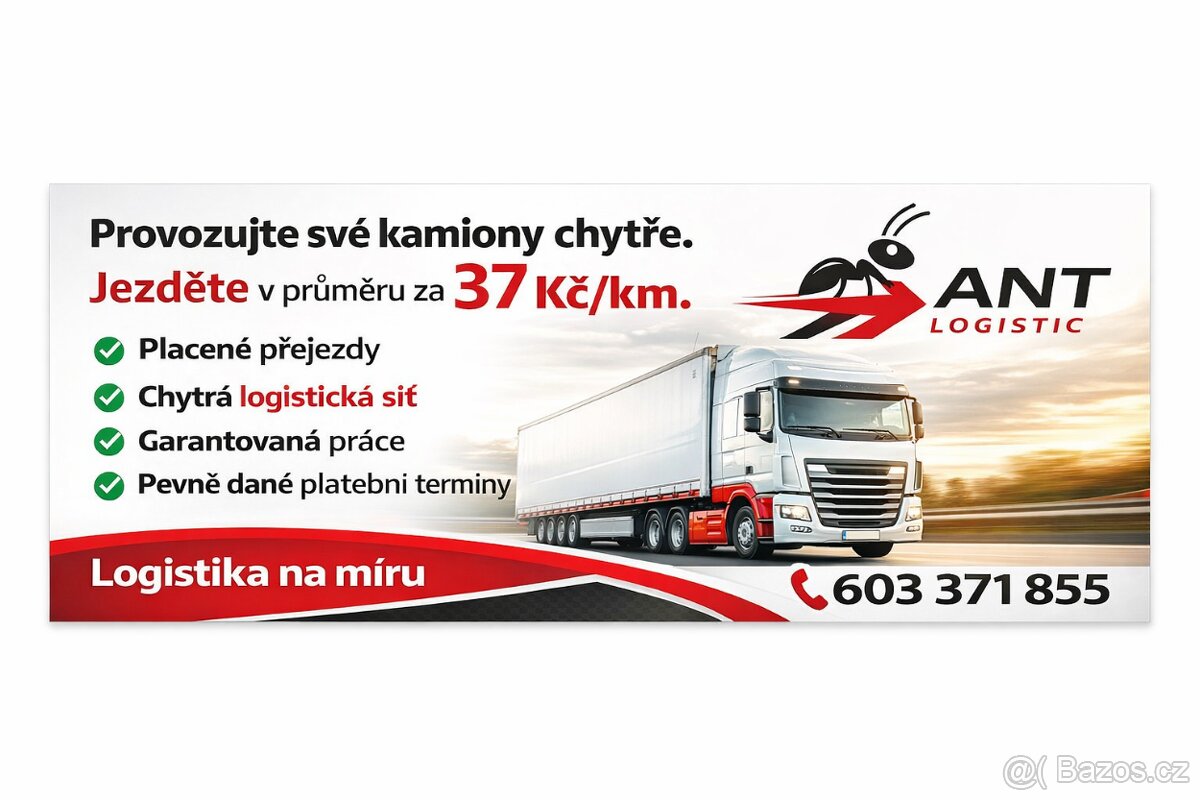 Hledáme smluvní dopravce s vlastní plachtovou dodávkou/ Sólo / Kamion. Společnost ANT Logistic s.r.o. hledá spolehlivé smluvní dopravce pro dlouhodobou spolupráci. Nabízíme: • kompletní vytížení vozidla • všechny kilometry placené • vozidla od 10 do 33 paletových míst • pevnou sazbu za kilometr dle typu vozidla • stabilní a pravidelnou práci Platební podmínky: • OKAMŽITÁ PLATBA PO DOLOŽENÍ DOKLADŮ • žádné dlouhé splatnosti • žádné čekání 30–60 dní Požadujeme: • platnou EU licenci • odpovídající pojištění • flexibilitu a profesionální přístup Proč spolupracovat s námi: Máme vlastní vozový park, a proto dobře rozumíme každodenní realitě dopravců i významu stabilního cashflow. Nabízíme férové a transparentní podmínky spolupráce, včetně možnosti okamžité platby, zejména pro začínající dopravce. Neprovozujeme spedici z obývacího pokoje. Jsme reálná logistická firma s vlastním zázemím, kancelářemi a dlouhodobě budovaným know-how. Upřednostňujeme osobní jednání – zavolejte