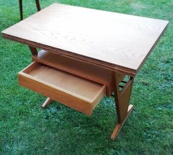 Prodám retro stolek se šuplíkem, rozkládací. Zachovalý. Rozměry: délka 80 cm x šířka 53 cm x výška 66 cm (v nerozloženém stavu). Vrchní deska stolu lze rozložit, na obrázku je stolek složený.