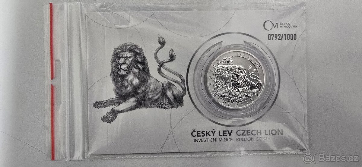 Český lev 2019 - reverse proof, číslovaný obal (certifikát) - číslo 0792/1000 Investiční mince České mincovny Český lev se poprvé představily v roce 2017 a záhy se s velkým úspěchem zařadily po bok slavných světových protějšků. Za jejich oblibou stojí mimo jiné propracovaný vlastenecký reliéf, který se s postupem času dočkal několika variant. V roce 2019 je jednou z nich uncová stříbrná mince vyražená v nevšedním provedení „reverse proof“. Jakýkoliv dotaz rád zodpovím .Osobní předání možné v Berouně.