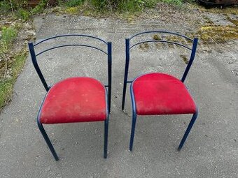 Na prodej kovová retro jídelní židle s čalouněným sedákem. Vhodné do kavárny, jídelny atd. Celkem 16 ks Židle jsou zaprášené a nesou známky používání, čalounění by chtělo vyčistit. Cena za všechny.