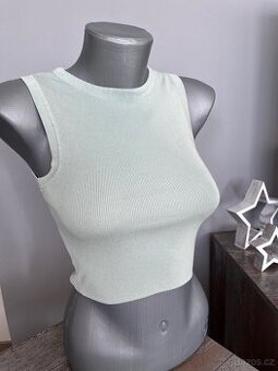 Moc hezký, pružný světle zelený top. Příjemný, svetříkový materiál. Velikost uvedena 2XS. Nošený, ale je naprosto v pořádku. Délka 36cm, šířka 27cm a dál pruží. Poštovné: 89,-/Zásilkovna nebo Balíkovna
