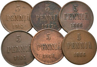Finsko pod Ruskem r. 1866 - 1917 soubor 6 ks mincí patina velmi pěkné stavy viz. detailní scan - Originální mince a medaile z přebytku sbírky - Platba na účet, zaslání poštou jako cenné psaní - Poštovné v ČR i za více kusů 90 Kč - Garance pravosti a seriózní jednání Pro odpověď použijte prosím písemný odpovědní formulář Bazoše "Kontaktovat inzerenta" - viz. níže, obratem se Vám ozvu, děkuji Cena je za celý soubor 6 ks mincí ( 266 )