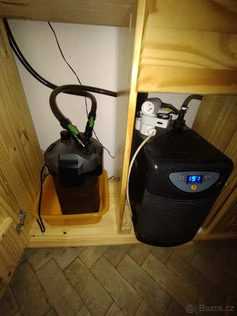 Prodám akvárium 115d×35h×40v s axolotama dvě samice tmavá a světla , plus sameček tmavý a veškeré vybavení chladicí zařízení Haelia 150A plus tetra filtr 1000 l cena za komplet 3500 bez stolku prodám pouze jako komplet