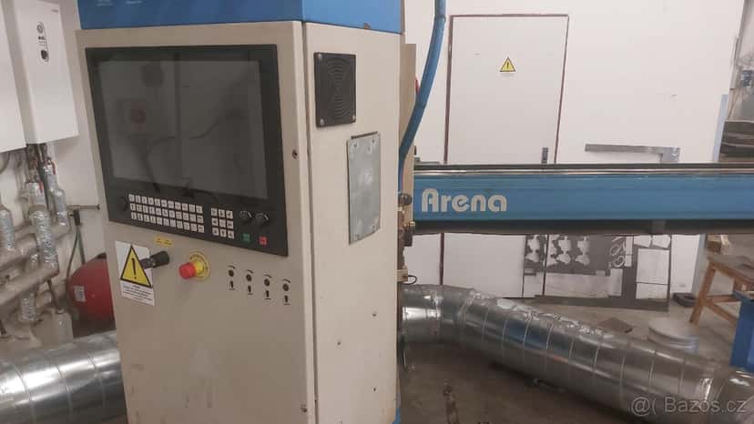 Arena 15/30, rozměr pracovní plochy 1500 mm x 3000 mm, řídicí systém MEFI, hlavní plazmový suport + 1 x vedlejší autogenní suport s acetylenovým hořákem Messer 832. Rok výrovy 2008, GO v roce 2022. Nový řídicí systém, pohony + pastorky, hadice a plynový rozvod, nová dráha. Kompletní seřízení, výměna ostatních opotřebených dílů. Ke stroji je možné dodat odsávání, vzduchotechnické potrubí, plazmu dle výběru, kompresor, delší dráhu – 6 m a program pro přípravu pálících plánů Zajistíme odbornou montáž, školení, náhradní díly a servis. Cena 350 000 Kč bez DPH – bez montáže, dopravy, školení. Záruka 6 měsíců.