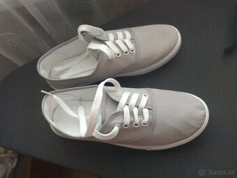 Tenisky s bílou podrážkou vel 37.5/38 nenošenévelikost psaná 39 ale odpovídá 37,5- 38. Délka stélky je 24 cm.