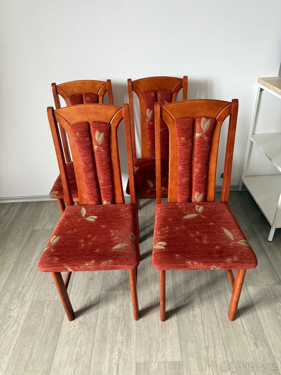 Prodám 4 ks čalouněných jídelních židlí. Cena za 4 ks.