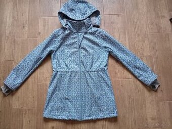 Materiál softshell, uvnitř fleece vrstva, voděodolný. Používaný, bez poškození, vše funkční. Odepínací kapuca, těhotenská i nosící vsadka. Nosící vsadku lze použít pro nošení v předu i na zádech. Vhodný na podzim/jaro. V zimě jsem nosila v kombinaci s teplou mikinou (do velkých mrazů ale není - dle mě). Stahovací guma v pase i na dolním lemu. Super, že pod něj opravdu netáhne. Lehký žmolík na rukávech, zohledněno na ceně a vyfoceno na posledních fotkách.
