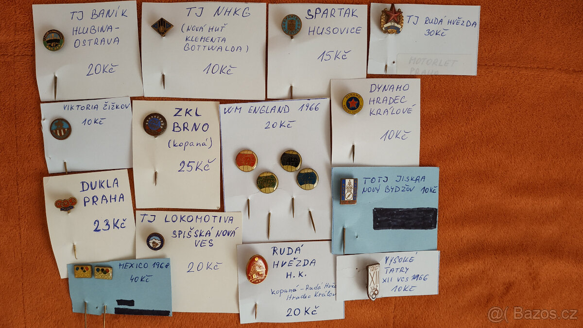 Cena: V textu. Prodám sportovní odznaky. Odznak TJ JISKRA NOVÝ BYDŽOV Cena 10 Kč. Odznak MEXICO 1968 Cena 40 Kč. Odznak TJ NHKG (Nová huť Klementa Gottwalda) Cena 10 Kč. Odznak ZKL BRNO Cena 25 Kč. Odznak DUKLA PRAHA Cena 23 Kč. Odznak TJ LOKOMOTIVA SPIŠSKÁ NOVÁ VES Cena 20 Kč. Odznak WM ENGLAND 1966 Cena 20 Kč. Odznak VYSOKÉ TATRY XII VCS 1966 Cena 10 Kč.