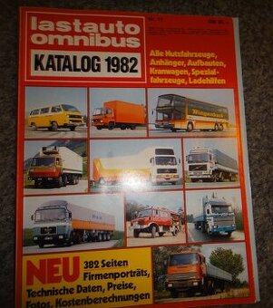 Prodam katalog uzitkovich vozu a autobusu z roku 1982. Katalog Lastauto & Omnibuss je vydavam kazdy rok v Nemecku a je v nemeckem jazyce. Pekne ilustrovany vcetne tech.udaju. Je velice zachovali. Dnes jiz tezko k sehnani. Pro milovniky a znalce nakladnich vozidel a autobusu.
