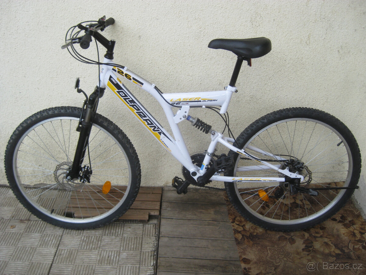 Celoodpružené kolo 26" kotoučové brzdy. Převody 3x6 osazení Shimano,stojan, ve velmi dobrém pojízdném stavu,kolo málo jeté. Odběr 3km. za Tovačovem.Platí do smazání