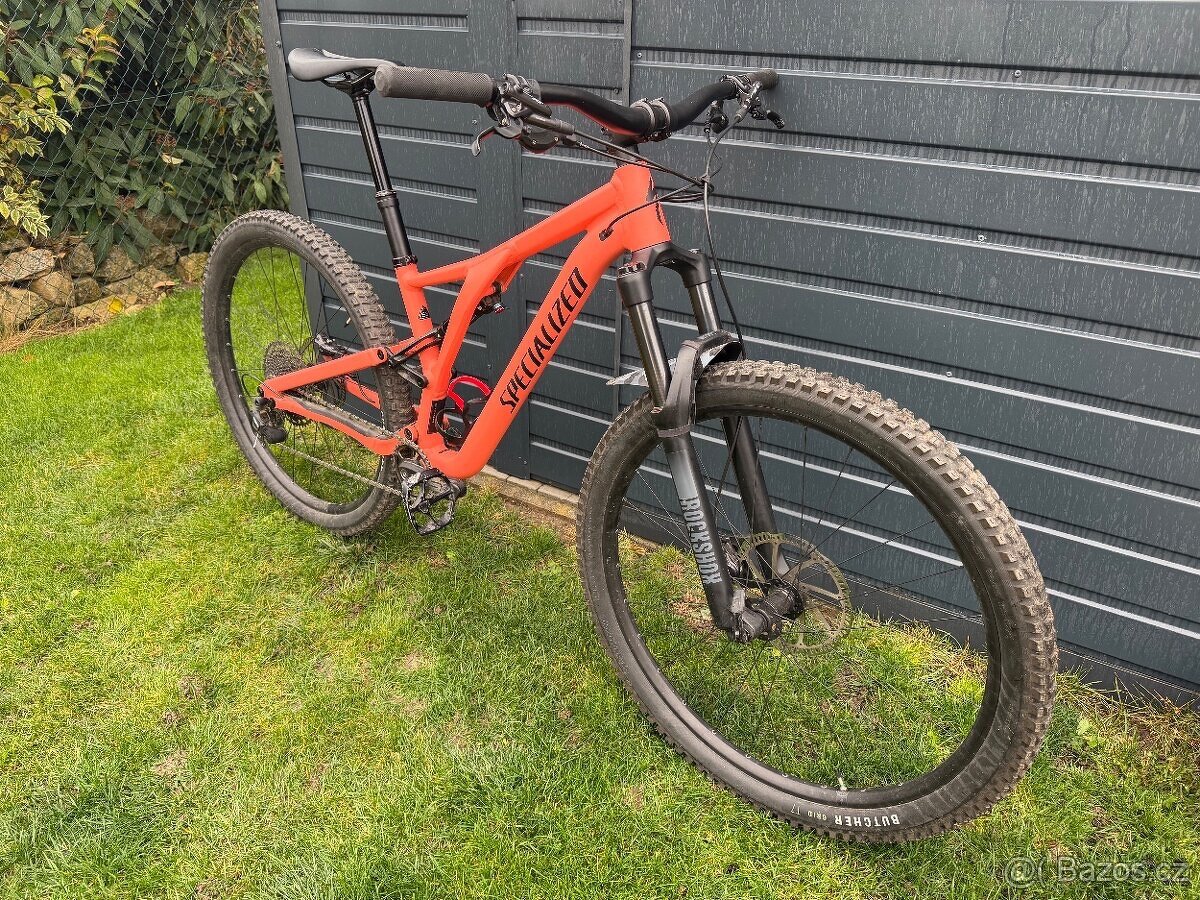 Prodam krasne celoodpruzene horske kolo Specialized Stumpjumper Alloy 29”, velikost S3 (165-180cm), jako nove, temer nepouzivane. Predni vidlice RockShox 35 Silver, Solo Air, 44mm offset, rebound adjust, TurnKey lockout, 15x110mm Boost™ Maxle® Lite thru-axle, 140mm of travel Zadni tlumic X-Fusion 02 Pro RL, Rx Trail Tune, rebound adjust, lockout S1:190x42.5mm, S2-S6: 190x45mm Brzdy Shimano XT predni kotouc 200mm zadni 180mm Kola 29” Páčky řazení SRAM SX Eagle, trigger, 12-speed Přehazovačka SRAM SX Eagle, 12-speed Kazeta SRAM PG-1210 Eagle, 11-50t Řetěz SRAM SX Eagle, 12-speed Kliky SRAM SX Eagle, S1:165mm, S2-S5: 170mm, S6: 175mm Převodníky 30T Středové složení SRAM Powerspline TranzX dropper, 34.9mm, S3: 150mm