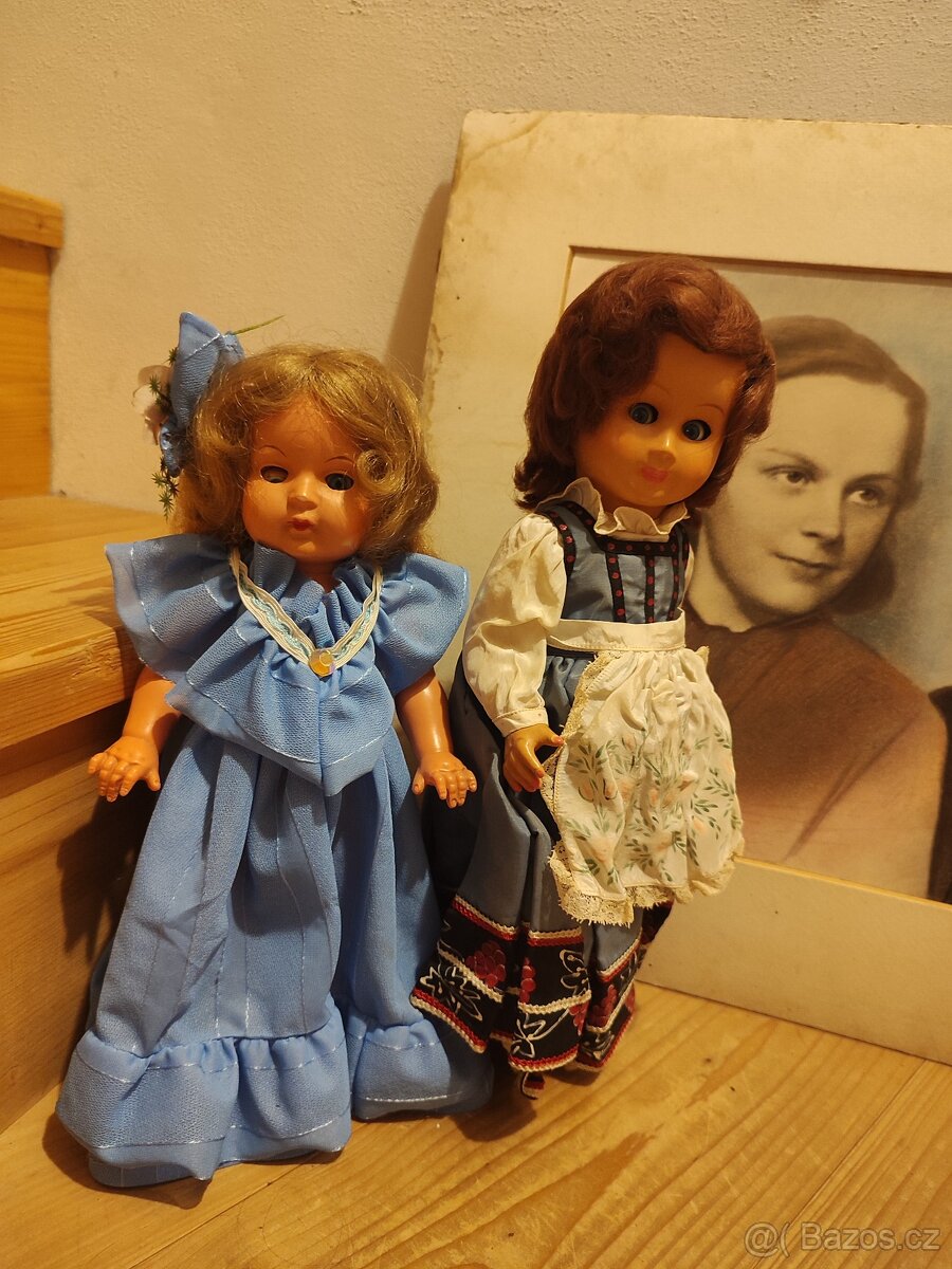 Cena je za panenku,nutné panenky přečistit. Menší 30 cm skleněné oči,bohužel jedno rozbité,toť jediná vada,jinak moc hezká. Větší 34cm dle mého odhadu Italská,v takové velikosti jsem ještě neviděla,kynklací oči do stran,občas si pobrekne,má brečítko,original obleček ,občas již dirka.je se stojánkem.mohu poslat víc fotek.