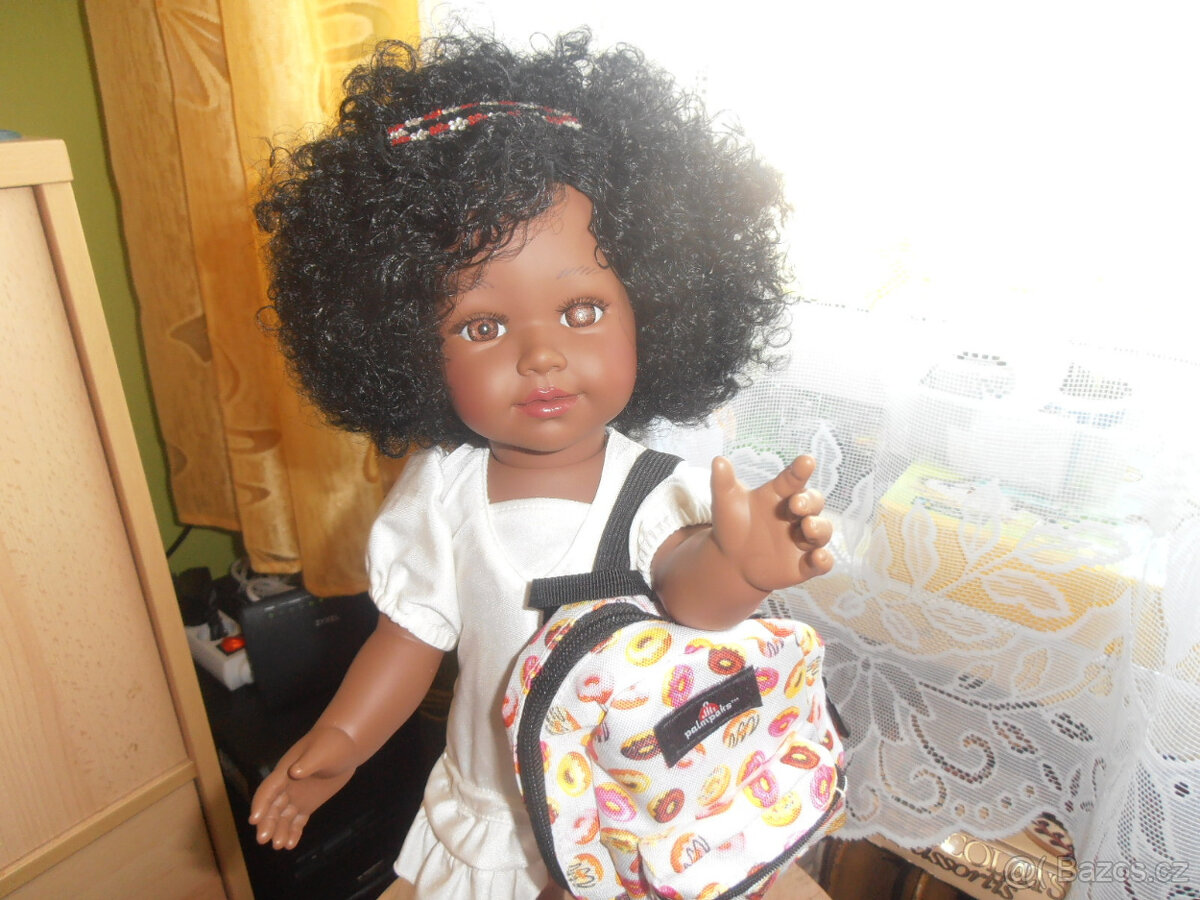 Realistická panenkaProdám krásnou snědou panenku 43cm velkou v letních šatičkách,s batůžkem a tenisovou vybavou