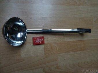 Nerezová naběračka Banquet 270 ml, nová, pro servírování omáček a tekutých pokrmů, s háčkem na zavěšení, vhodná do myčky nádobí. Vyrobeno ČR Hradec Králové, průměr naběračky 11 cm, délka asi 38 cm (pro nás moc velká). Cena 99 Kč a doručení zásilkovna 99 Kč, nebo balíkovna 89 Kč.
