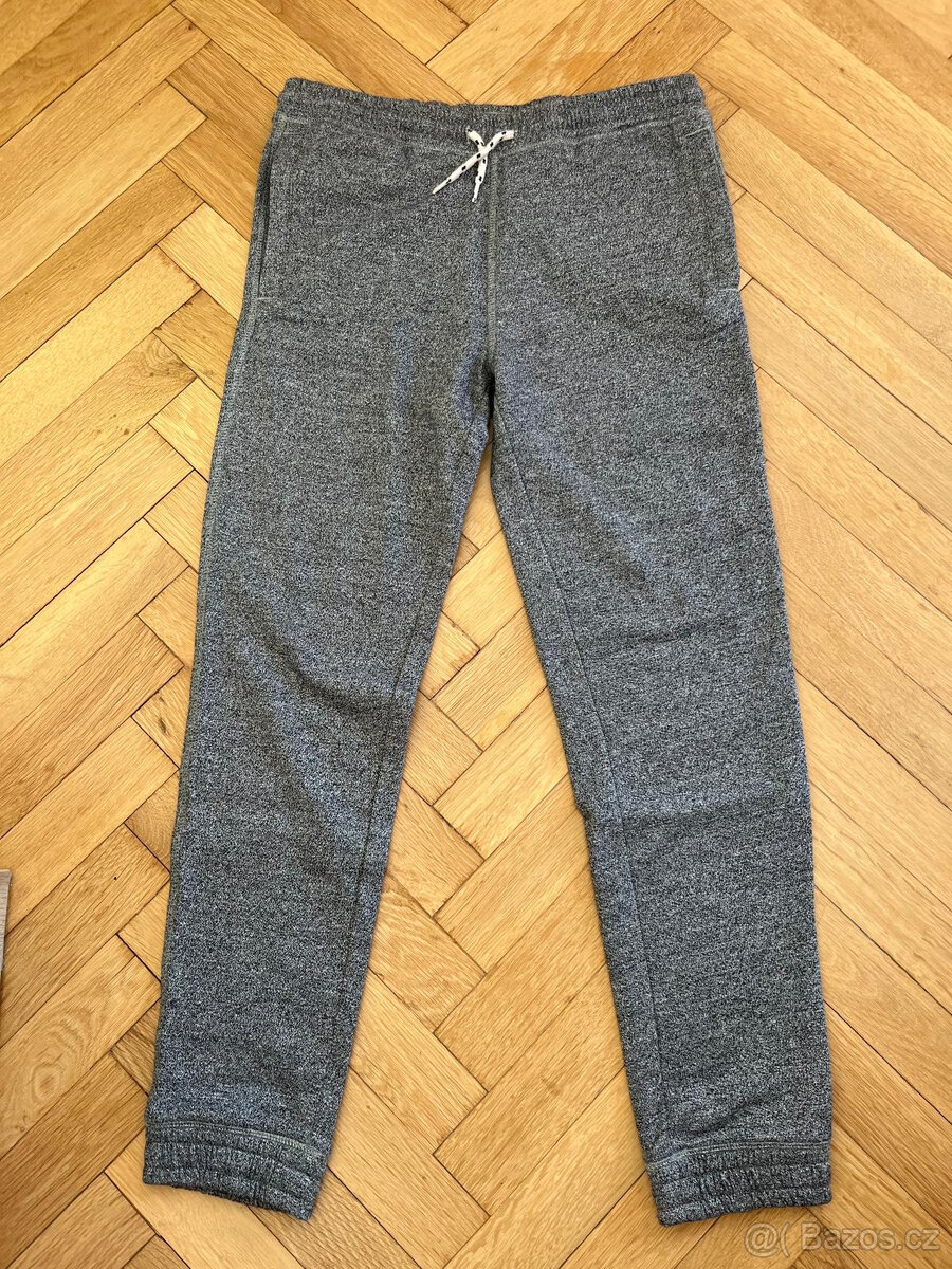 Dětské tepláky C&A, vel. 164 (14 let), šedé (žíhané), 87% bavlna, 13% polyester, v pase na gumu + šňůrka na stažení, 2 boční kapsy + 1 zadní, nohavice dole též na gumu. Nové, nenošené.