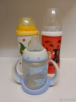 Prodám dvě kojenecké láhve a jeden hrníček značky NUK. Použité. Pouze osobní převzetí. Cena za všechny tři kusy 100 Kč.