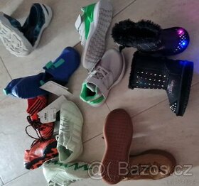Prodám obuv pro děti - nové. Kopačky všechny nové - Adidas zelené turfy - vel. 30½ (185mm), oranžovo-černé turfy - vel. 28 (16cm). Dále použité Bačkory Befado - vel. 30, nové šedo-zelené Adidas na suchý zip - vel. 28 (165mm) , Modré Adidas nazouvací - vel. 21 (115mm), Kozačky Skechers - blikající špička! - vel. 21 (11cm) a pískové semišové tenisky PUMA - vel. 31 (185mm). Dále opět nepoužité páry tenisek - nové a k většině i původní balení - orig. krabice. Dětské tenisky - 2x černé Reebok (tkaničky) vel. 27 černá podrážka (165mm) a vel. 30 s bílou podrážkou (185mm). Modré Adidas - vel. 26 (155mm). Též černé Adidas SAMBA (zlatý nápis a bílá podrážka)- vel. 36½ (23cm) a zimní tmavé Adidas se zelenou podrážkou a kožíškem - vel. 37 (235mm). Ceny jsou v rozmezí od 49,- do 790,-kč. Pouze osobní předání v Praze. Děkuji.