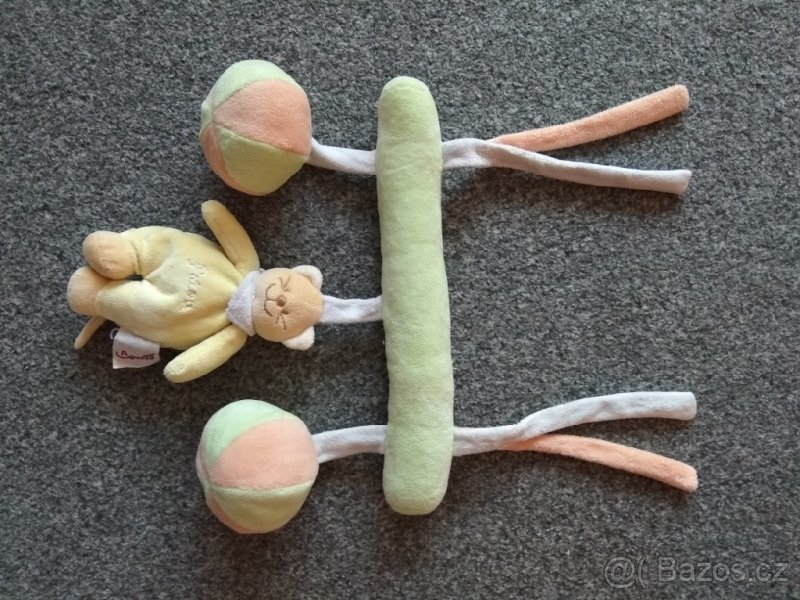 Prodám krásnou hračku k zavěšení na autosedačku, postýlku, kočárek, pořádku,.... Medvídek šterkací.