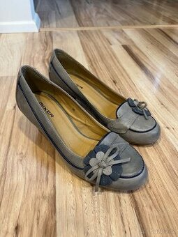 dámské boty MIXER, šedé s květovým dekorem, Dvakrát obuté, boty jsou kožené na nízkém podpatků, No levém podpatků malé škrábnutí mít foto Botičky jsou perfektním stavu