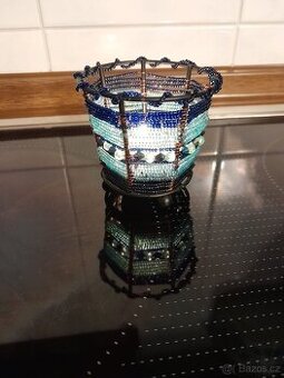 Prodám korálkový svícen. Cena 80 Kč.