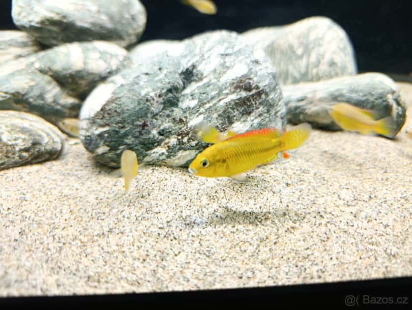 Na prodej říční tlamovci rodu pseudocrenilabrus, velikosti do 2cm. Pohlaví zatím k nerozeznání. Na fotce již vybarvený samec.Os.odběr Ostrava Zábřeh.