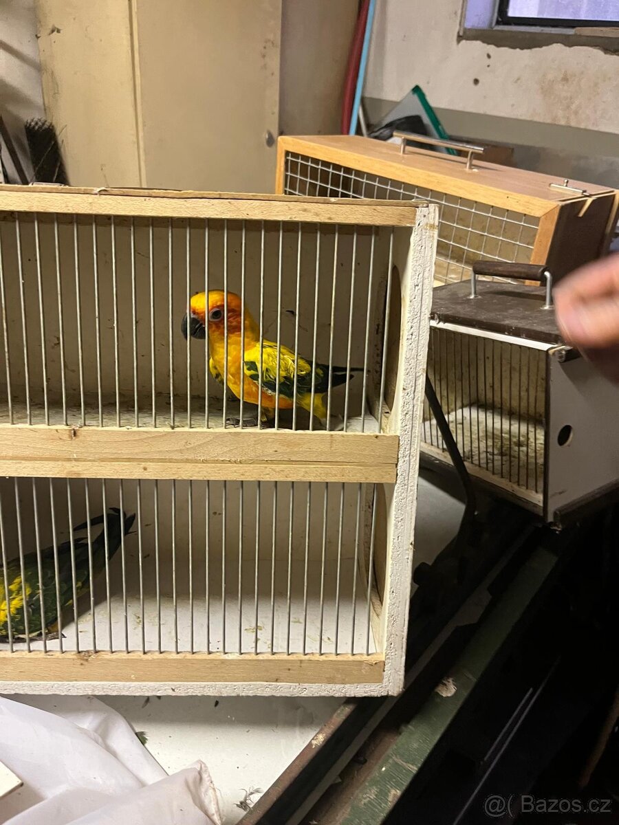 Cena: Dohodou. Prodám velmi levně 1.0 aratinga sluneční r.25 dna po úrazu nožky.