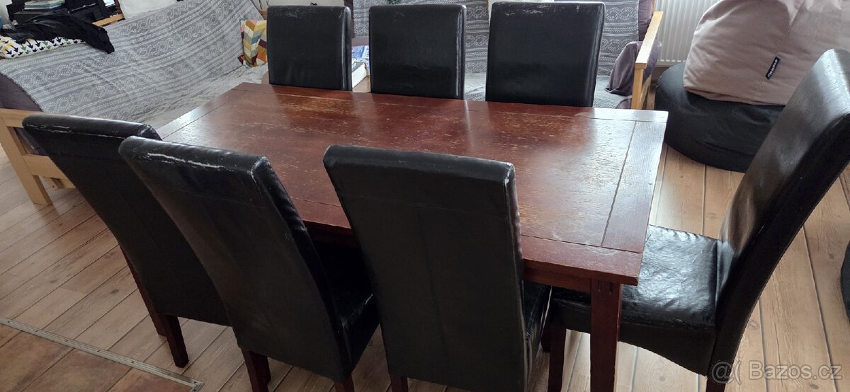 180 x 90 x 76 cm, použité koženka na židlích opotřebená Cena za vše.