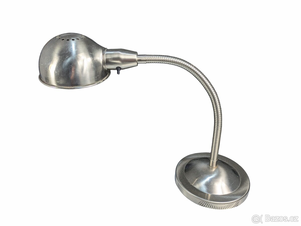 Stolní lampička inspirovaná stylem Bauhaus/funkcionalismus. Hezký stav. Variabilita díky ohebnému husímu krku. Plně funkční. Výška až 70 cm.