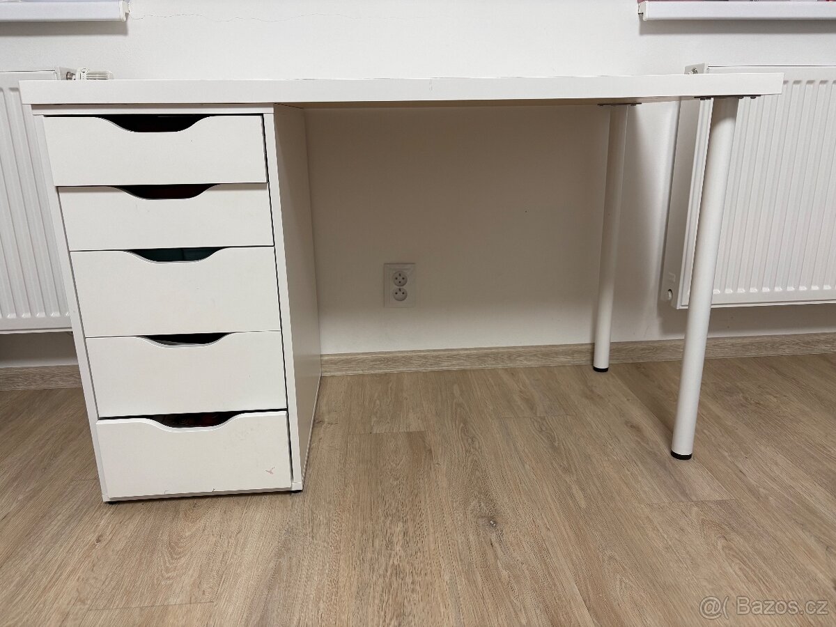Predám stôl, ktorý má viditeľné poškodenie od farby a lepidla. Zásuvky sú funkčné, niektoré sú tiež trochu od farby. Všetko je vidieť na fotkách. Odvoz možný ihneď.