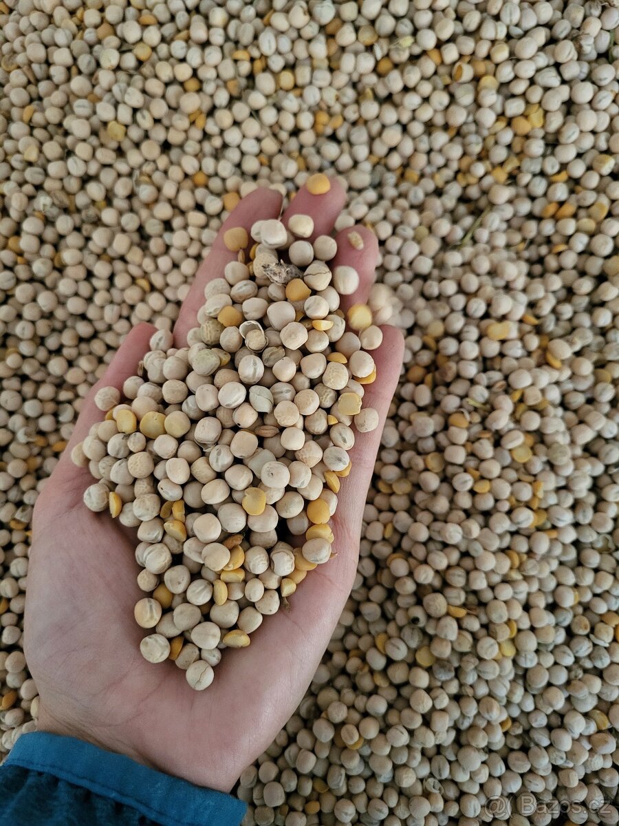Nabízíme krmný hrách letošní sklizeň 2025. Možno ve vaku (500-600kg) nebo v pytlích (50kg). Cena: 700 kč/metrák