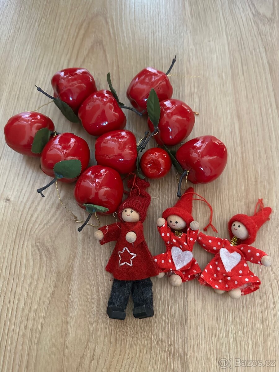Jablíčka a dřevění panáčci na stromek na Vánoce