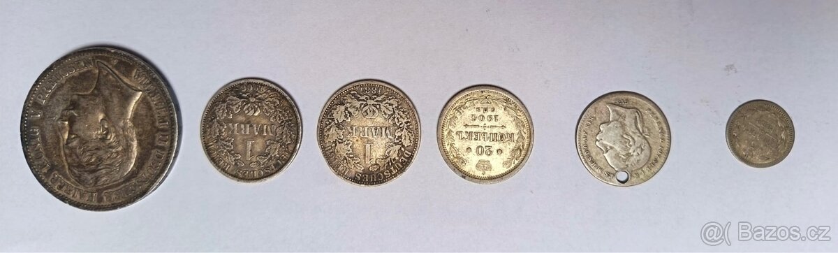 Cena: Nabídněte. Cenu nabídněte. Pouze jako celek !!! 🇦🇹 Rakousko-Uhersko (Habsburská monarchie)• velká mince s portrétem Františka Josefa I. (okolo roku 1907)• menší mince typu heller / koruna👉 období přibližně 1890 – 1916 🇩🇪 Německé císařství (Deutsches Reich)• mince 1 Mark s dubovými větvičkami (roky okolo 1887 a 1906)👉 období 1871 – 1918 🇫🇷 Francie• menší mince s profilem Marianne (pravděpodobně 20. století) Mince pocházejí převážně z let cca 1880 – 1910 a z území Rakouska-Uherska, Německého císařství a Franci