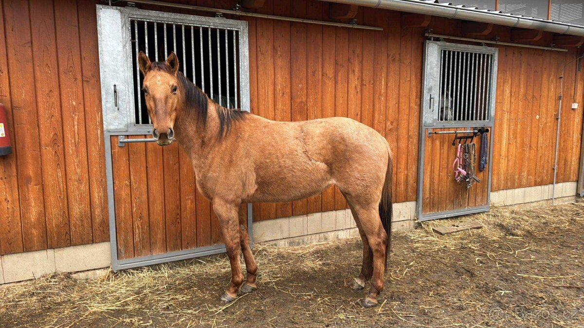 Prodám letos 4 letou klisnu ČT x quarter, kvh 160,zdravá, bez úrazu. Zvyklá 24/7 Z nedostatku času se s ní začíná pracovat až teď, neobsedlá!vhodná pro někoho,kdo si chce koně udělat podle sebe a má zkušenosti. Nevhodná pro děti. Při vážném zájmu dohoda o ceně možná