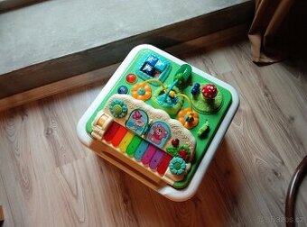Interaktivní stolek s piankem, umožňuje dětem od cca 6 měsíců mačkat a posouvat prvku na stolku. Stoleček lze oddělat a mohou si tak hrát i děti ležící/sedící na zemi. Uvnitř stolku je menší prostor na další hračky. Stolek funguje na 2 sady baterií - jedna do "zelené" části stolku a druhá do piana, lze zapínat samostatně.Na bílé části 2 místa od pomalování fixou, jinak zcela funkční.Osobní odběr Praha.