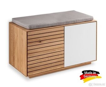 Lavice z masivu ROMA Germany - Divoký dub celomasiv / bílé matné sklo obsahuje: 2 x Hluboký celomasivní dubový šuplík 1 x Dvířka v kombinaci s bílým matným/saténovým sklem 1 x Dubový foch s možností variabilního umístění Jedná se o nový a kvalitní německý výrobní program, který vás doslova pohltí svou širokou nabídkou a elegantním nadčasovým designem. Korpusy nábytku jsou vyrobeny z přírodního masivního divokého dubu, z průběžných masivních lamel. Přední pohledové části nábytku jsou z masivního divokého dubu v kombinaci s bílým matným (saténovým) sklem. Veškeré masivní dubové části jsou ošetřeny kvalitní voskovou politurou (olejováním), která zajišťuje nábytku dlouhou životnost a příjemný design. Otevírání a zavírání dvířek a zásuvek je řešeno moderním bezúchytovým systémem click clack. Vnitřní části šuplíků + fochy jsou vyrobeny z masivního dubu, zadní stěna nábytku je dýhována ve stejném provedení jako zbylé části. U nábytku je použit velice kvalitní spojovací materiál (viz. posled