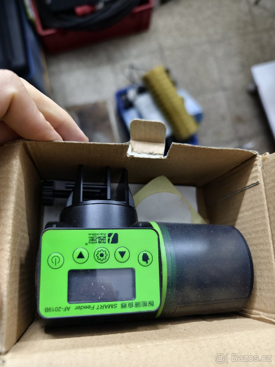 Parametry AquaBlue AF-2019BObjem zásobníku: 200 ml (vhodný pro vločky, granule i pelety) ���Počet krmení: 1–4x denně, nastavitelný čas i množství (dávkování je plynule nastavitelné) ��Displej: podsvícený LCD displej pro nastavení ��Napájení: 2× AA baterie (nejsou součástí balení) �Materiál: ABS plast, černé provedeníRozměry: cca 15 × 7,5 × 11 cm ��Hmotnost: cca 280 g �Možnost ručního krmení tlačítkem/manual mode ��Tiché provedení a snadné plnění shora bez nutnosti demontáže zásobníku �Vhodné pro montáž na hranu akvária nebo pomocí oboustranné pásky na víko �Nádržka odolná proti vlhkosti, krmivo se neslepuje �360° otočný zásobník pro správné umístění ��Toto krmítko je vhodné jak pro běžná domácí akvária, tak na dovolenou (množství vystačí na několik týdnů provozu)