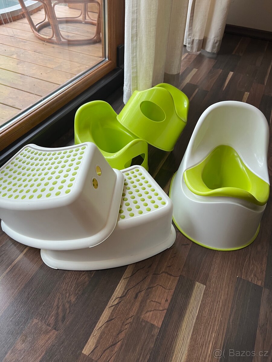 Prodám 2 schůdky, 2 malé nočníky a jeden větší s vyjímatelnou vložkou - vše Ikea, cena za kus 20,-. Osobní odběr Kladno, Praha, Kolín.