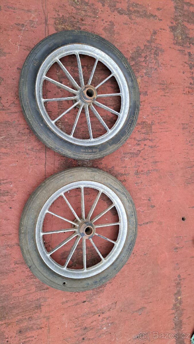 Stará retro kolečka na koloběžku,vozík a podobné. Zachovalý stav. Použité. Cena za obě. Kurýrem nezasílám