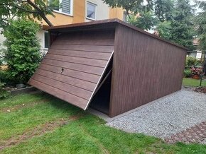 Kovová garáž 3x5 m, barva ořech. Garáž s výklopnými vraty a střechou směrem dozadu. Rozměry: Šířka: 3,00 m Délka: 5,00 m Typ střechy. Přední část: 2,13 m Zadní část: 1,90 m Světlá šířka vchodu: 2,80 m Světlá výška vstupu: 1,90 m Technické údaje: 1x výklopná brána vybavená zámkem na dva klíče - horizontální panel T-17 barva garáže: vertikální lichoběžník T-14 ořech barva střechy: hnědá 8017 lesklá zpracování - lemovani konstrukce z pozinkovaných profilů více informací a objednávky ///605516094 , biuro@liderstal.cz///