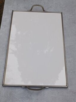 Více jak sto let starý a nepoškozený podnos o rozměrech 51x33cm. Porcelán je nepoškozen stejně tak i kovová obruba s madly, která je z poniklované mosazi. Osobní prohlídka i převzetí je možné v Praze-Dolní Břežany nebo v Písku. Po domluvě i možnost zaslání v bezpečném balení.