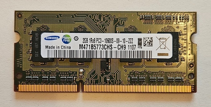 Prodám 2 GB DDR3 SODIMM paměť Samsung M471B5773CHS-CH9. 1333 MHz, CL9