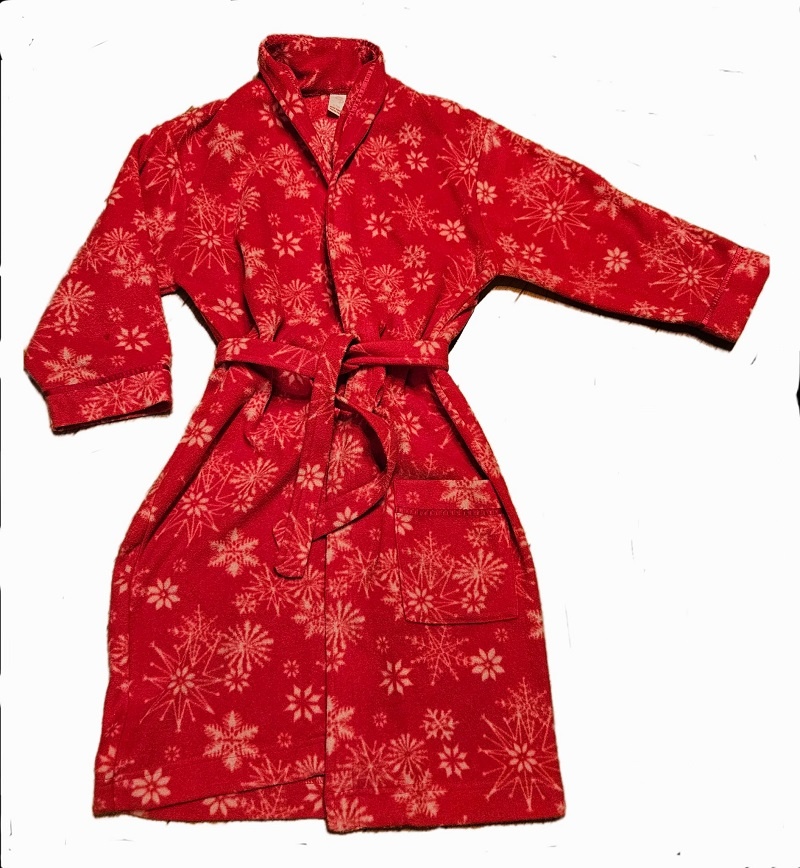 Holčičí župan 6-7 let -velmi dobrý stav, měkký, teplý a příjemný délka od ramene 81 cm, rukáv od ramene 39 cm, šířka 45 cm.