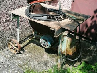 Okružní pila na dřevo, cirkula, nová elektrika. Motor 4 kW, 380V. Kolečka a madlo na manipulaci. Plně funkční, stav - viz foto. Možná výměna za dílenský stůl - ponk. Můžu dovést na vozíku.